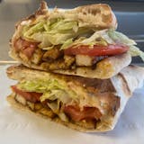 Tzatziki, shaved gyro, feta, lettuce, tomato.